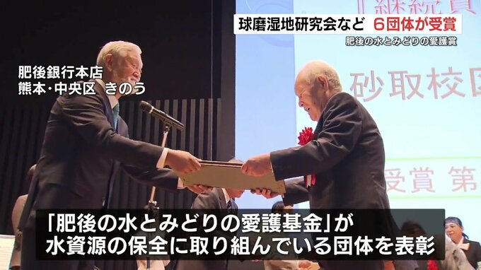 熊本の水と緑の保全に貢献したとして、6つの団体が「肥後の水とみどりの愛護賞」を受賞しました。