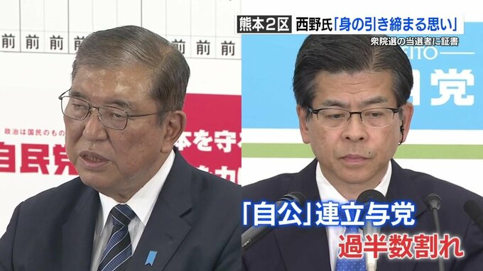 自民党派閥の裏金事件を巡り「政治とカネ」の問題への審判が注目された今回の衆院選。熊本選挙区では自民党が4議席を独占したものの、全国的には自民党と公明党の連立与党が大幅に議席を失い、過半数割れに追い込まれました。
