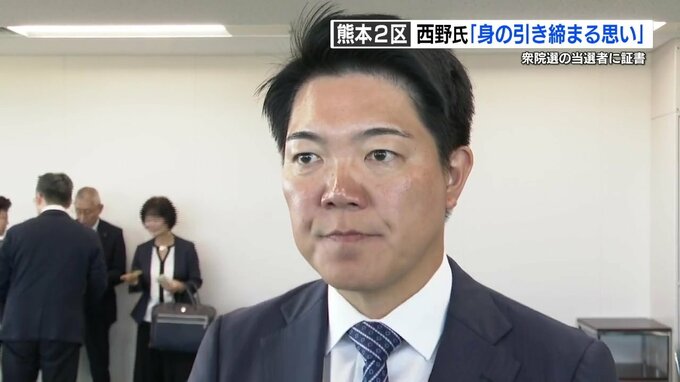 熊本2区で当選 自民党・西野太亮氏「多くの皆様方のおかげで、2期目もチャンスを頂いたので、しっかり頑張っていきたい、本当に身の引き締まる思いです」