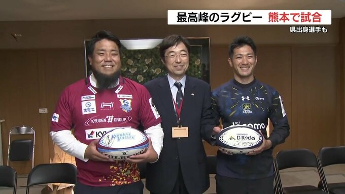 ラグビーの国内最高峰リーグの試合が熊本で開催されるのを前に、熊本出身選手たちが木村敬(きむら たかし)熊本県知事を表敬訪問しました。