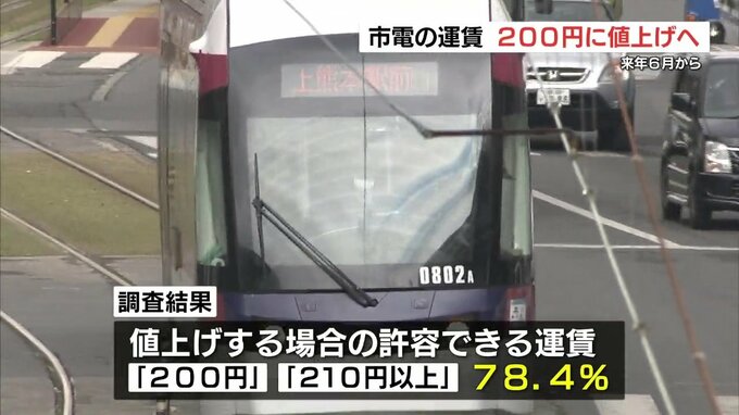 その結果、値上げする場合の許容できる運賃について78.4%の人が「200円」または「210円以上」と回答したということです。この結果を踏まえて熊本市交通局は200円に値上げすることを決めました。