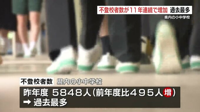 熊本県内の不登校児童数 11年連続増加で5848人に 小学校での「暴力行為」も過去最多 2024年11月1日(金) 10:49 国内 熊本県内の小中学校で不登校の児童生徒の人数が11年連続で増加し、過去最多となりました。県教育委員会によりますと、昨年度(2023年度)の小中学校の不登校者数は、前の年度より495人多い5848人で、過去最多とな…