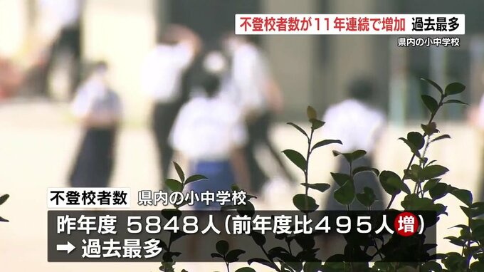 県教育委員会によりますと、昨年度(2023年度)の小中学校の不登校者数は、前の年度より495人多い5848人で、過去最多となりました。
