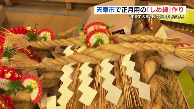 12月20日ごろまでに神棚用や玄関用など大小あわせて7種類、約6000本の「しめ縄」を作り、天草市内の農産物直売所などで来月から販売されます。