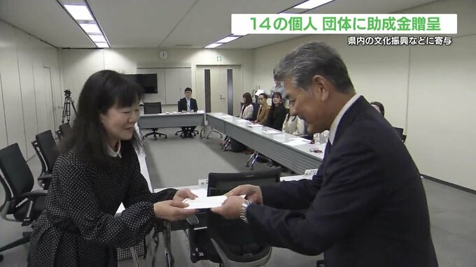 熊本放送文化振興財団は、熊本県内の文化振興などに寄与する14の個人や団体に助成金を贈りました。