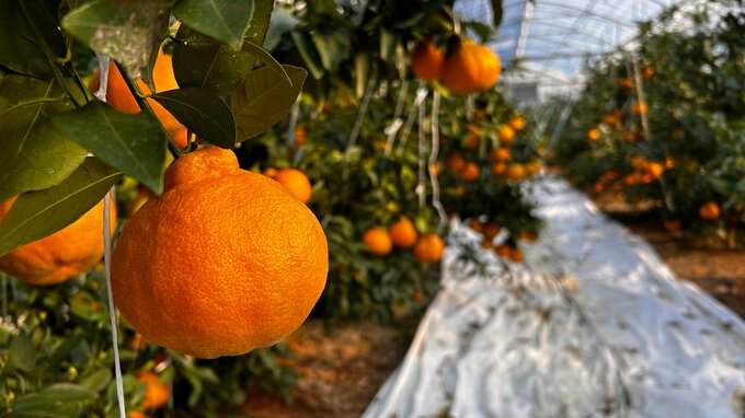 JA本渡五和の管内では、14戸の生産者がビニールハウスで温度をこまめに調整して育てる「加温デコポン」を栽培しています。