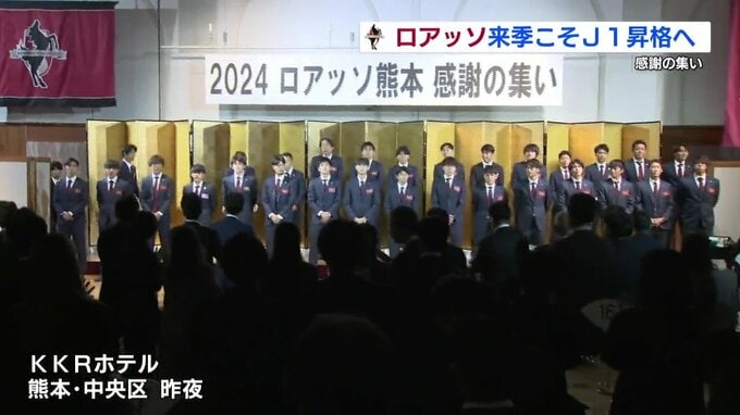 シーズンを12位で終えたロアッソ熊本が感謝の集いを開き、来シーズンのJ1昇格を目標に掲げました。