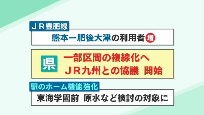(スタジオ解説)特に、熊本ー肥後大津間の利用者が増加しています。そのため、熊本県はJR九州と一部区間での「複線化」に向けた協議を始めています。