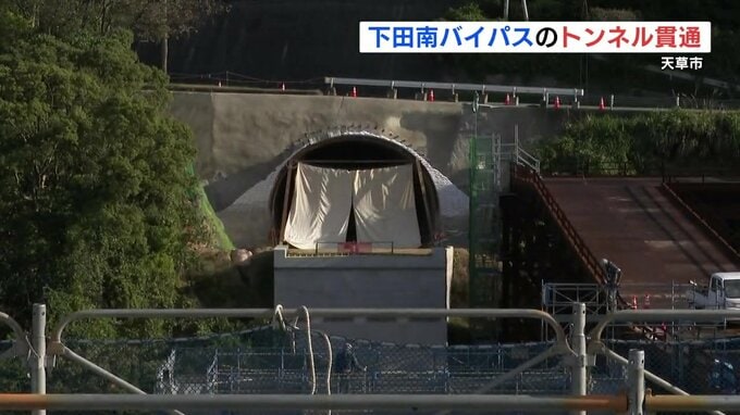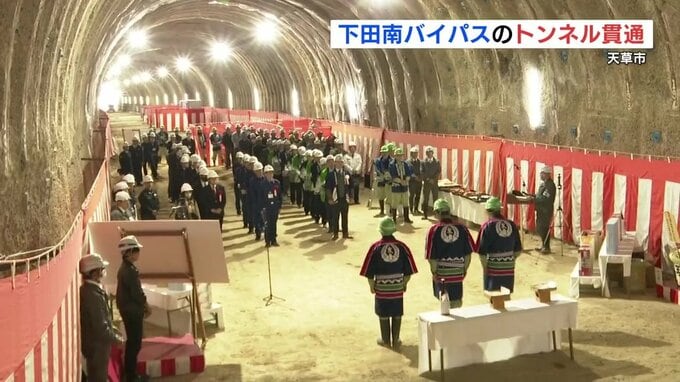 貫通したのは、熊本県天草市下田南地区と妙見浦(みょうけんうら)を結ぶ全長367メートルのトンネルで、きょう(20日)は貫通を記念した式典が開かれました。
