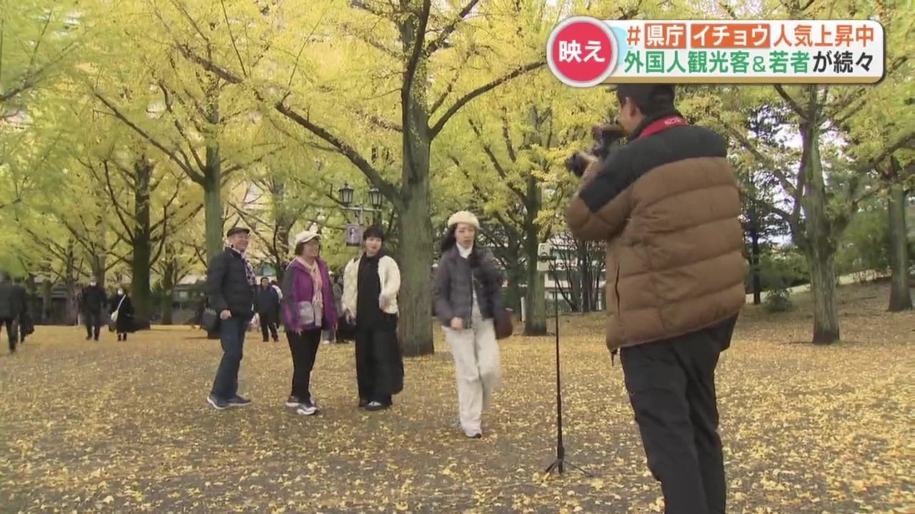 いま、熊本県庁のイチョウ並木がSNSを通じて外国人観光客や若者の間で人気スポットになっているようです。