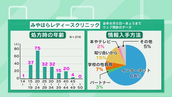 宮原医師のクリニックで緊急避妊薬を処方された人を年代別で見てみると、2割近くが20歳未満です。そして、どうやって緊急避妊薬を知ったかと聞くと、インターネットが68%で、学校での性教育と答えたのは7%しかありませんでした。