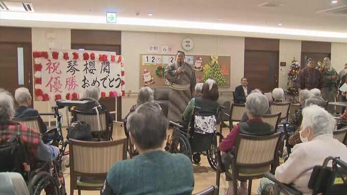 熊本市東区の老人ホームを訪れたのは、11月の九州場所で初優勝した大関・琴櫻です。