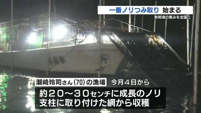 「有明海の恵みを全国に」 一番ノリのつみ取り始まる 熊本 2024年12月7日(土) 11:59 国内 有明海で黒々とした一番ノリのつみ取りが始まっています。有明海では12月に入り、一番ノリの収穫が始まりました。熊本市西区河内町の沖合にある潮崎玲司(しおさき れいし)さん(70)の漁場では、今月(12月)4日…