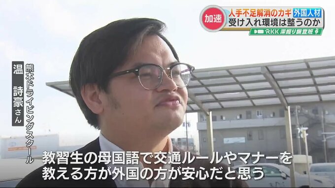 受け入れにあたり重要なことは何か、既に外国人材を採用している熊本市内の自動車学校を訪ねました。