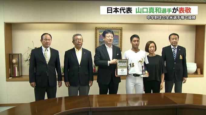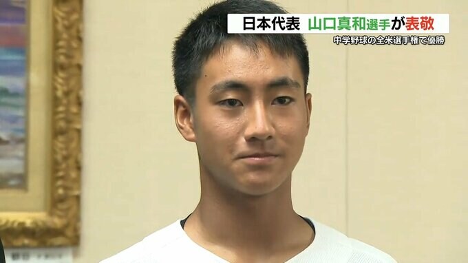 中学生の野球の全米選手権で日本代表として優勝に貢献した山口真和(やまぐち まきと)選手が熊本市長を表敬訪問しました。
