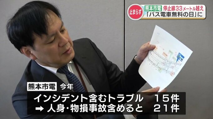 熊本市電でインシデントを含む運行トラブルは今年(2024年)15件目で、人身・物損事故を含めると21件に上ります。