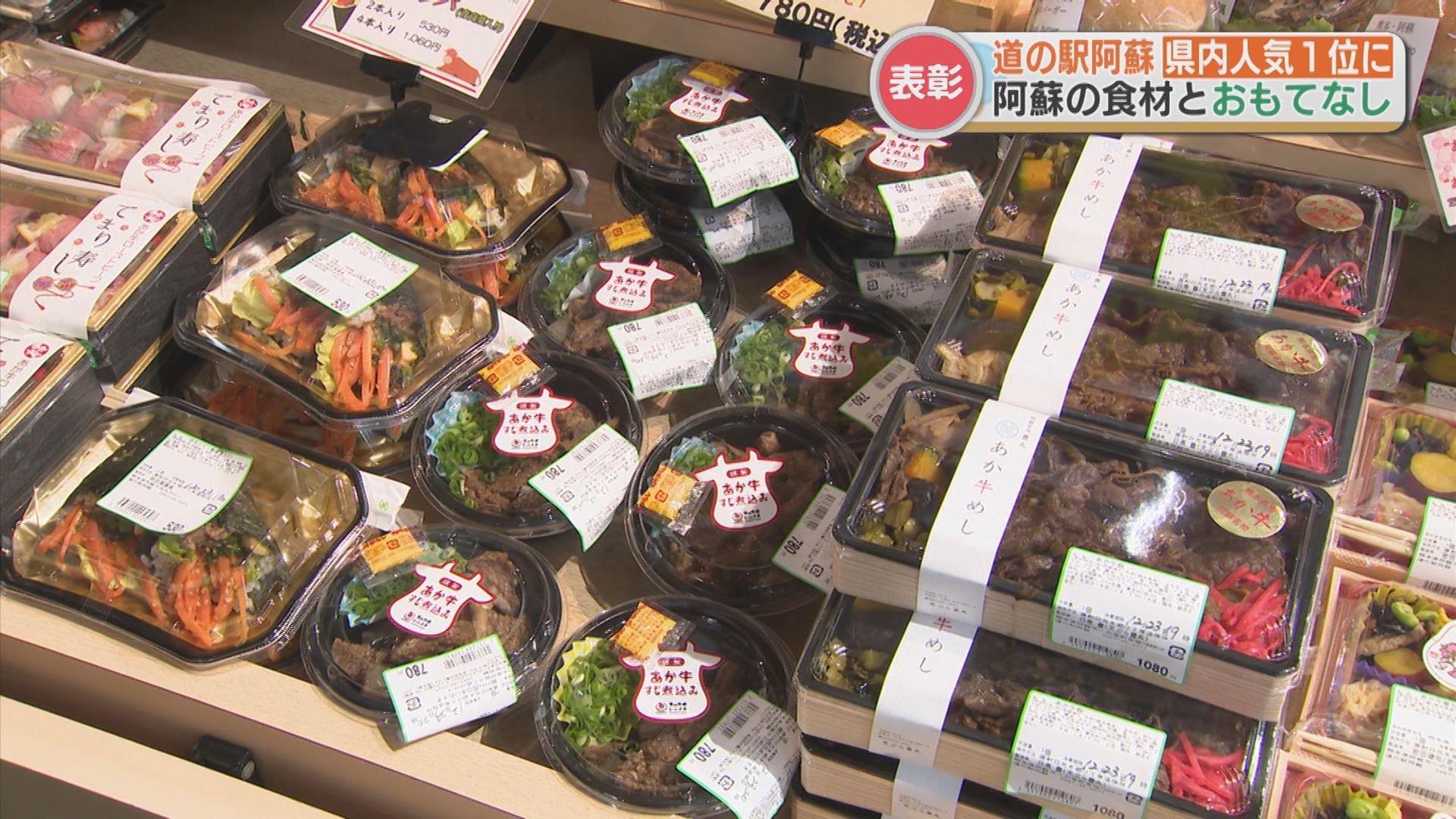 人気の理由は豊富な品揃え。阿蘇市内の新鮮な農産物、あか牛の弁当など、阿蘇の美味しいものが支持されたようです。