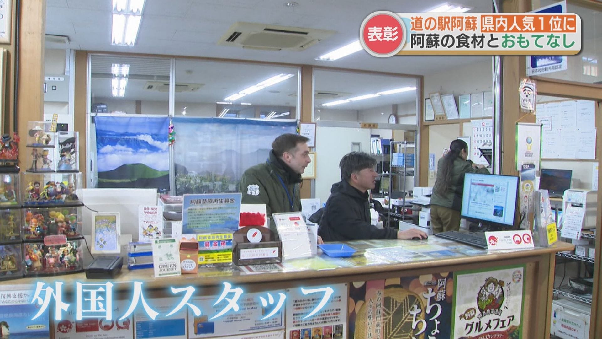 また、道の駅阿蘇は外国人スタッフが外国人観光客に対応するなど、多言語の観光案内にも力をいれています。