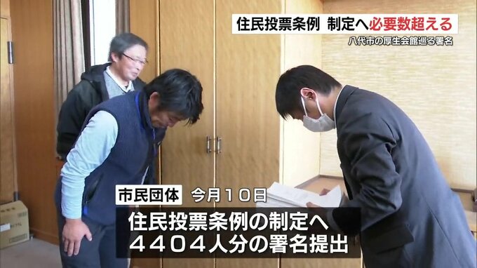 厚生会館については八代市議会が去年7月、老朽化などを理由に廃止する条例案を可決しました。しかし、利活用を求める住民の声も根強く、市民団体は12月10日、住民投票条例の制定に向けて4404人分の署名を提出しました。