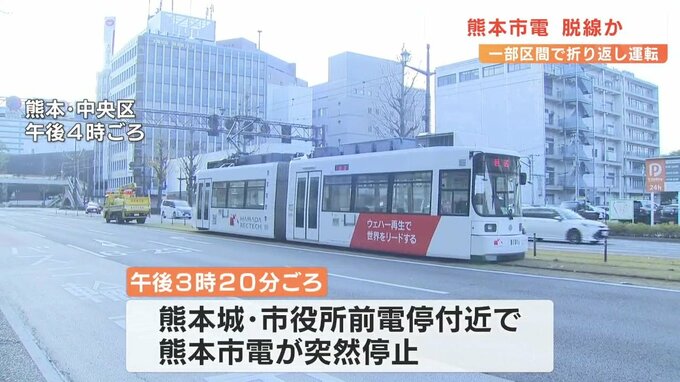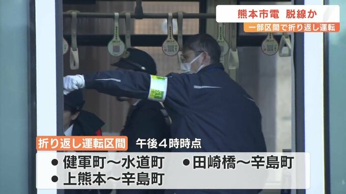 熊本市交通局によりますと、車両を確認したところ脱線していることが分かったということです。乗客などに けがをした人はいませんでした。