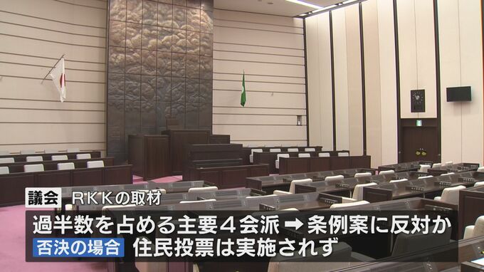 ただRKKの取材では、議会の過半数を占める主要4会派は条例案に反対するとみられ、その場合、住民投票は実施されないことになります。