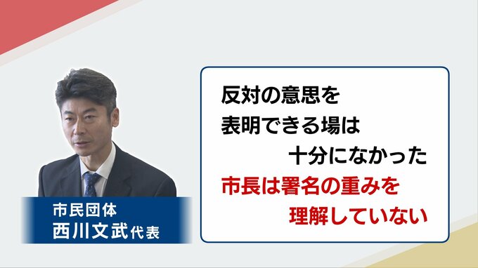大西市長の意見を受けて、住民投票を求めている市民団体の西川文武代表は「反対の意思を表明できる場は十分になかった。市長は署名の重みを理解していない」と非難しています。