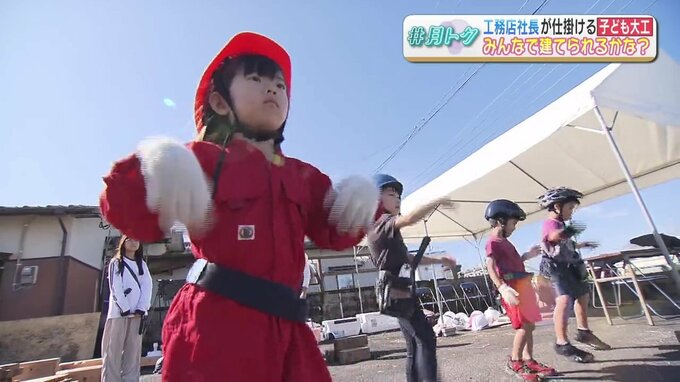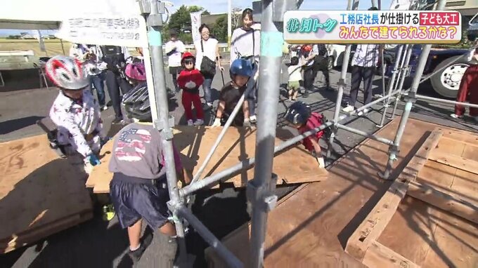 有江さん「大工体験するにあたって、危ない所がいっぱいあります。足場に勝手に登っちゃうと落ちて死んじゃうかもしれないからね」