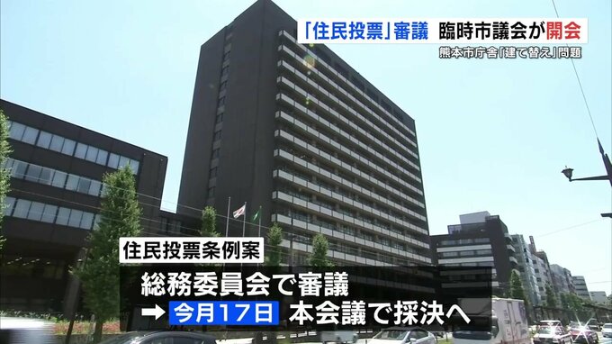 熊本市役所建て替え巡る「住民投票」 委員は全員『反対』か 17日に条例案採決へ 2025年1月14日(火) 12:10 国内 熊本市役所本庁舎の建て替えの賛否を問う住民投票について審議する臨時の市議会が、1月14日開会しました。熊本市役所の建て替えについては去年12月、市民団体が市民に賛否を問うべきだとして住民投票の実施を求め…