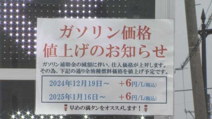 【ガソリン価格】あす(16日)再び値上げ「熊本で180~185円見込み」 今後も上がる?専門家の見通しは 2025年1月15日(水) 19:21 国内 去年12月に上がったばかりのガソリン価格が、あす(16日)再び値上げです。熊本県内のガソリンスタンドは、駆け込み給油の対応に追われています。記者「値上げ前日。熊本市西区のガソリンスタンドでは、今日が特売…