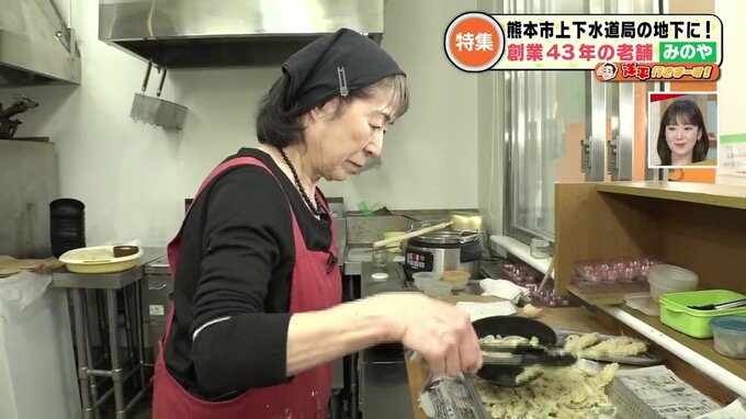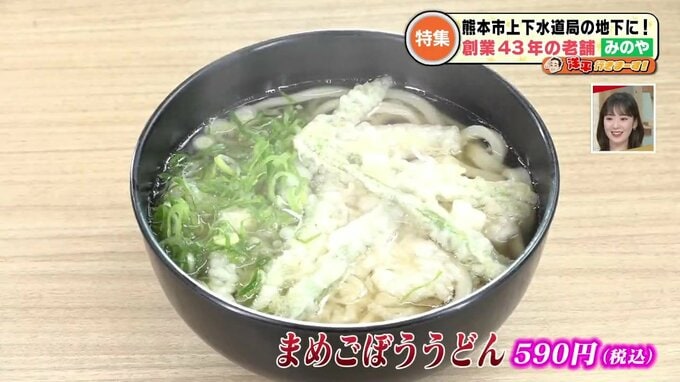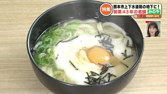 43年前に熊本市役所裏で創業し、その後戸島(熊本市東区)などで営業していた人気のうどん店『みのや』。10年前、熊本市が地下スペースに食堂を公募していたのをきっかけに移転してきました。