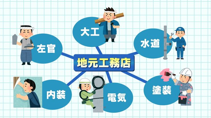 (解説)地元の工務店が受注すれば、金具、木材、施工業者など、工務店と取引がある地元企業の仕事も増えます。こうして多くの地元企業が元気になるのが德永さんたちが住宅展示場を作る一番の狙いだそうです。