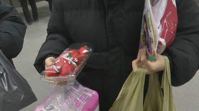 店頭では現在700円ほどするというイチゴに学生も大喜び。