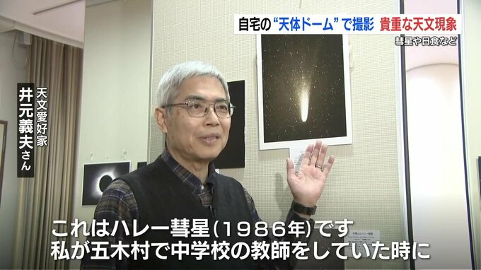 撮影したのは天文愛好家の井元義夫(いもと よしお)さん。熊本市の自宅には天体ドームを設置していて、この望遠鏡で撮影した惑星や県内各地で捉えた銀河などの星空、約60点の写真が会場に展示されています。