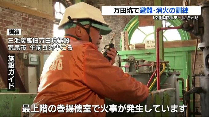 きっかけは法隆寺の火事 「文化財防火デー」に合わせ観光客の避難誘導など訓練 熊本・荒尾市 万田坑 2025年1月27日(月) 12:14 国内 1月26日の文化財防火デーに合わせて、熊本県荒尾市の万田坑で防火訓練が実施されました。施設ガイド「最上階の巻揚機室で火事が発生しています。消防署に連絡をお願いします。私は消火器で初期消火を行います」文…