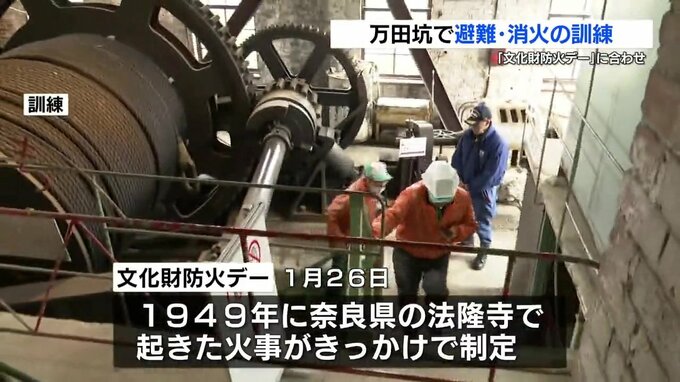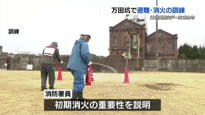 1月26日の文化財防火デーに合わせて、熊本県荒尾市の万田坑で防火訓練が実施されました。