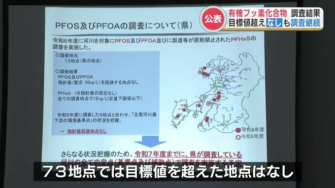 一方、県が今年度に調査した県内の河川と地下水合わせて73地点については目標値を超えるPFOS・PFORは検出されませんでした。