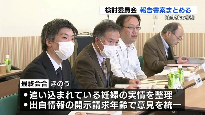 最終会合となった2月2日は、国への報告書の提出に向けて、内密出産のガイドラインとしても広く使用できるように、追い込まれている妊婦の実情などを整理したほか、子どもが出自情報を開示請求できる年齢についても意見を統一したということです。