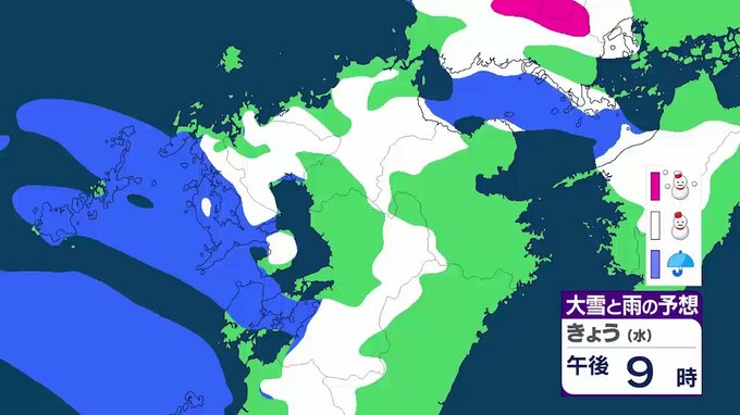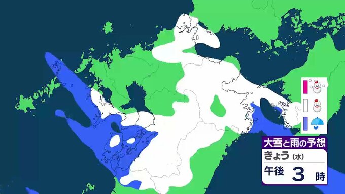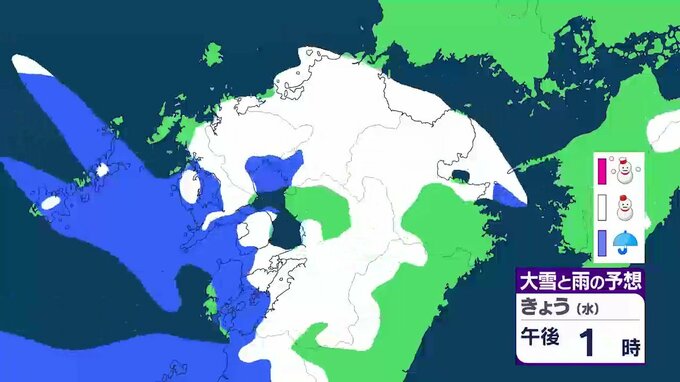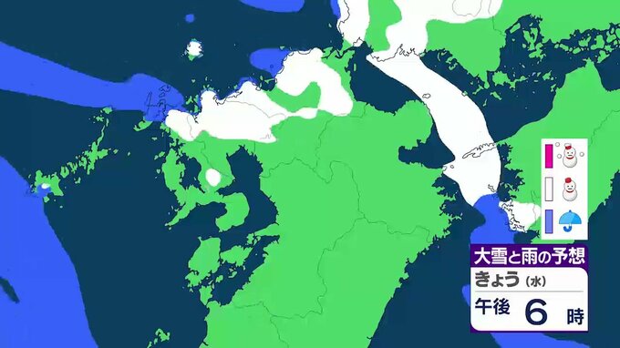 【大雪情報】熊本県内の広い範囲で「夜にかけて雪のピーク」 6日正午までに山地15センチ・平地7センチ予想(降雪シミュレーション)