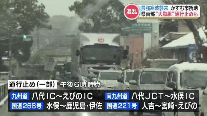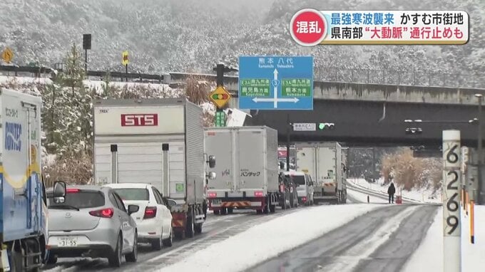 熊本県南部の高速道路では通行止めの区間が徐々に増え、並行する国道3号も水俣市から八代市日奈久までの約40キロが除雪のため通行止めに。その結果、多くの車が一時行き場を失う状態になりました。