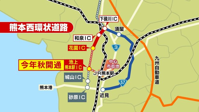 あわせて、池上熊本駅インターを出て熊本駅方に向かう約1キロの道路も同じ時期に開通する予定です。