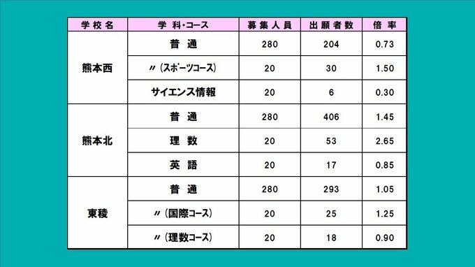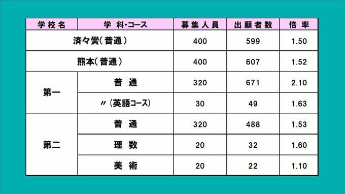 熊本県公立高校入試2025『出願者数』『志願倍率』一覧 済々黌1.50倍 熊本1.52倍 第一2.10倍など【全日制52校の全学科・コース掲載】※2月17日(月)出願締め切り時点 2025年2月18日(火) 00:10 国内 済々黌・熊本・第一・第二・熊本西・熊本北・東陵