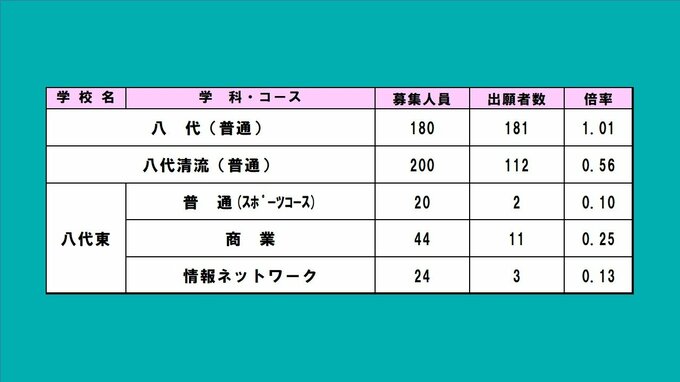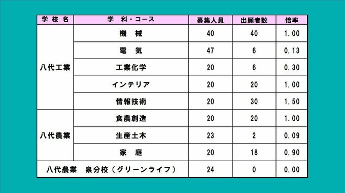 熊本県公立高校入試2025『出願者数』『志願倍率』一覧 済々黌1.50倍 熊本1.52倍 第一2.10倍など【全日制52校の全学科・コース掲載】※2月17日(月)出願締め切り時点 2025年2月18日(火) 00:10 国内 八代・八代清流・八代東・八代工業・八代農業・八代農業泉分校グリーンライフ科・人吉・球磨工業