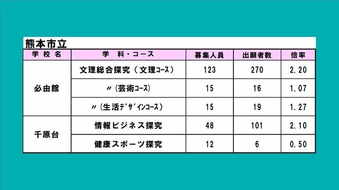 熊本県公立高校入試2025『出願者数』『志願倍率』一覧 済々黌1.50倍 熊本1.52倍 第一2.10倍など【全日制52校の全学科・コース掲載】※2月17日(月)出願締め切り時点 2025年2月18日(火) 00:10 国内 (熊本市立)必由館・千原台