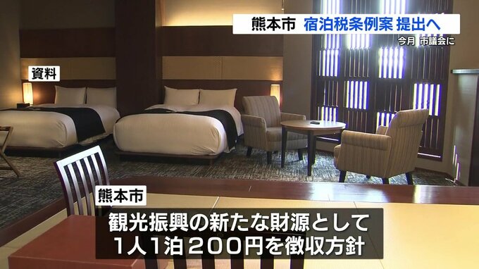熊本市は宿泊税を観光振興のための新たな財源に位置付け、市内の施設に宿泊する客に対し、1人1泊あたり200円を徴収する方針です。