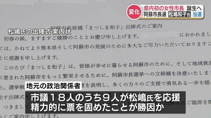 また、地元の政治関係者は市議18人のうちベテランから若手まで9人が松嶋氏を応援し、精力的に票を固めたのが勝因ではないかと指摘します。