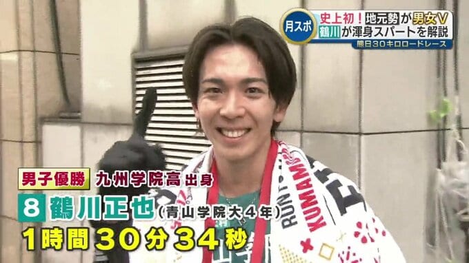 「熊本で勝ちたかった」鶴川正也が魂のスパート!地元の大声援を受け21年ぶりの県勢V 女子は西村美月が大会新【熊日30キロロードレース】 2025年2月17日(月) 19:25 国内 2月16日(日)に開催された「熊本城マラソン2025」。熊日30キロロードレースは、男女そろって地元勢の優勝に沸きました。序盤にレースを引っ張ったのは開新高校出身、中央大学4年の園木大斗(そのき だいと)。同じ…