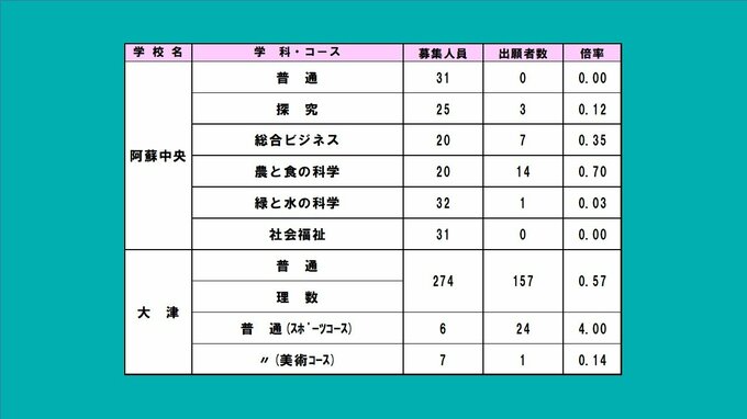 熊本県公立高校入試2025 志願倍率(出願変更後)済々黌、熊本、第一、第二ほか 最高倍率は大津(普通・スポーツ)4.00倍【全日制52校の全学科・コース一覧】 2025年2月21日(金) 15:29 国内 大津(スポーツ)4.00倍・高森(マンガ)3.17倍など