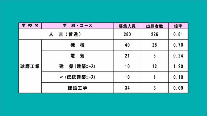 熊本県公立高校入試2025 志願倍率(出願変更後)済々黌、熊本、第一、第二ほか 最高倍率は大津(普通・スポーツ)4.00倍【全日制52校の全学科・コース一覧】 2025年2月21日(金) 15:29 国内 八代1.01倍・八代清流0.56倍など