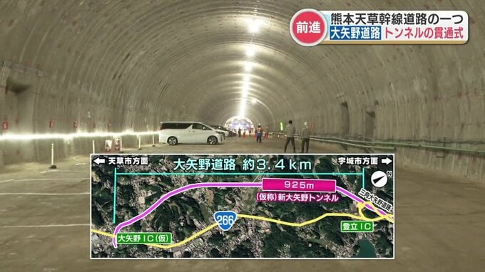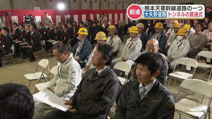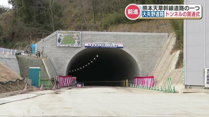 国と熊本県が整備を進める熊本天草幹線道路の一つ、大矢野道路でトンネルの貫通式が行われました。
