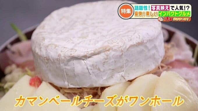 この店のインパクトグルメは、カマンベールチーズがワンホールどかんとのったもんじゃです。